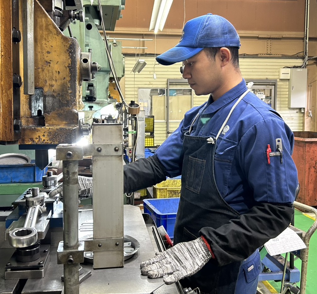 プレス作業の業務量が増える一方、募集しても日本人が集まらず、来てもすぐ辞めてしまう状況が続いていたため、今後の採用について検討した結果、技能実習制度を活用してみようという話になりました。